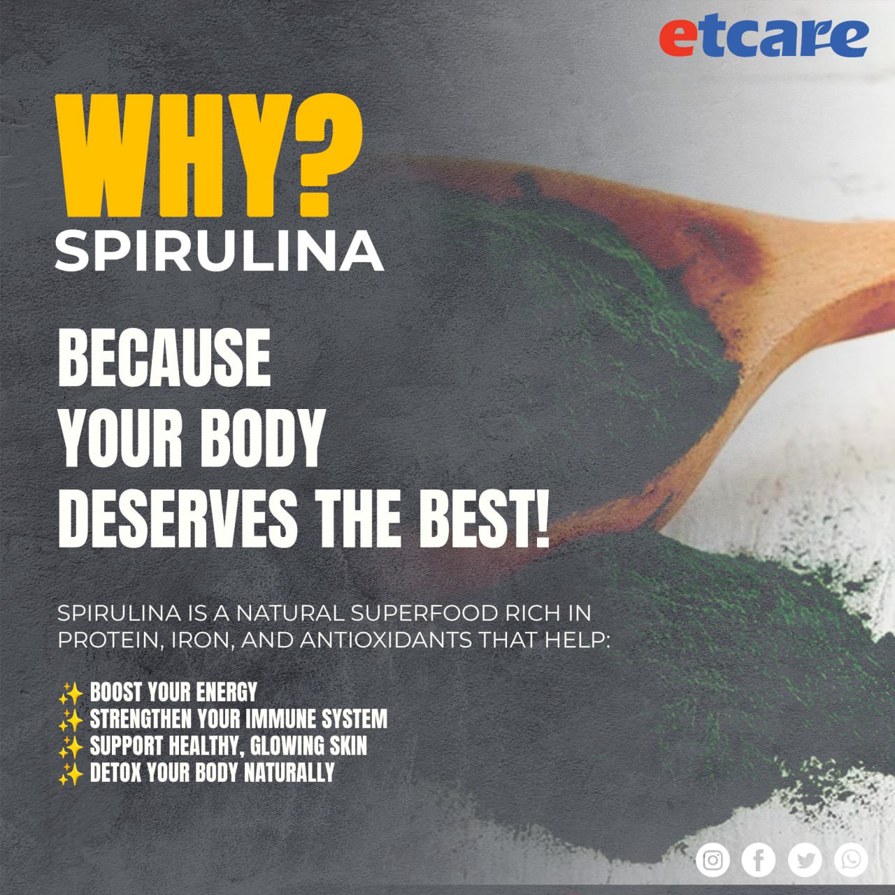 Whether taken as a powder, tablet, or mixed into smoothies, Spirulina truly proves that good health begins with good nutrition.
